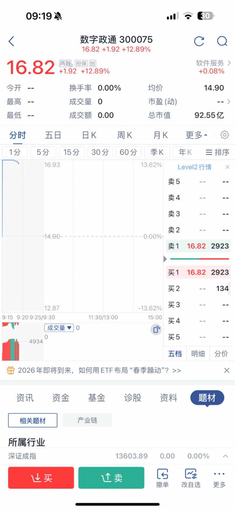 $数字政通(SZ300075)$ 谁能解释下早盘9点19分的截图为什么是这个价#炒股日记# #强势机会# #实盘记录#