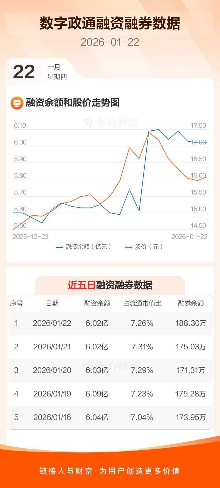 交易所最新数据显示,数字政通于2026年1月22日获融资买入2328.33万元,融资偿还2318.17万元,当日融资净买入10.16万元。目前,该股融资余额6.02亿,占流通市值比例为7.26%。
