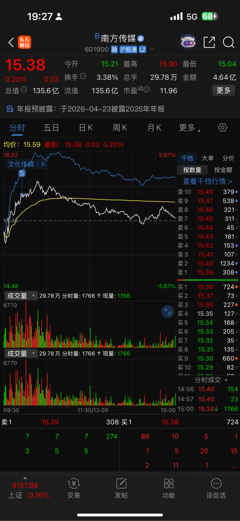 减就涨!刚好15.73不亏钱要打15.74看着打没成交!打15.73清仓另一半不