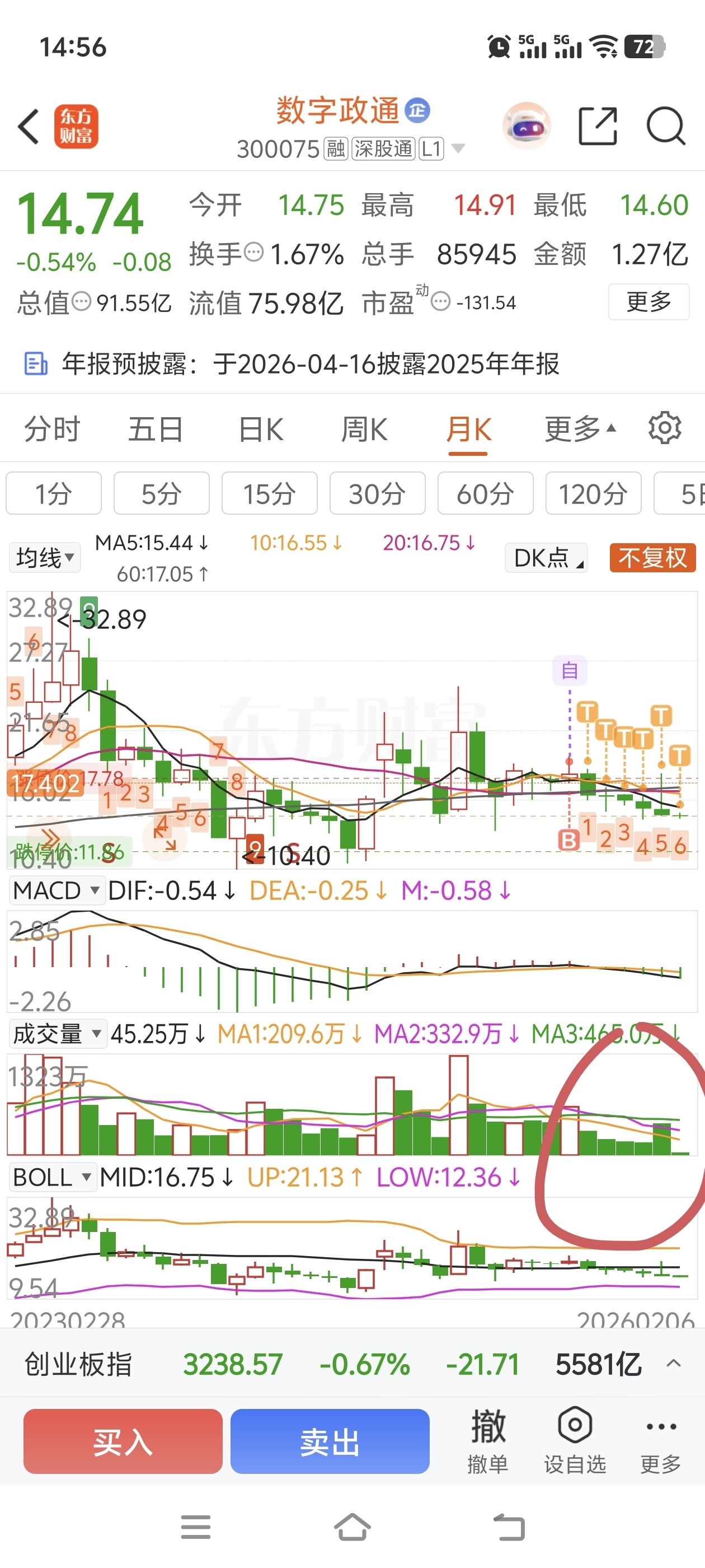 $数字政通(SZ300075)$ 没救了,月线六连阴