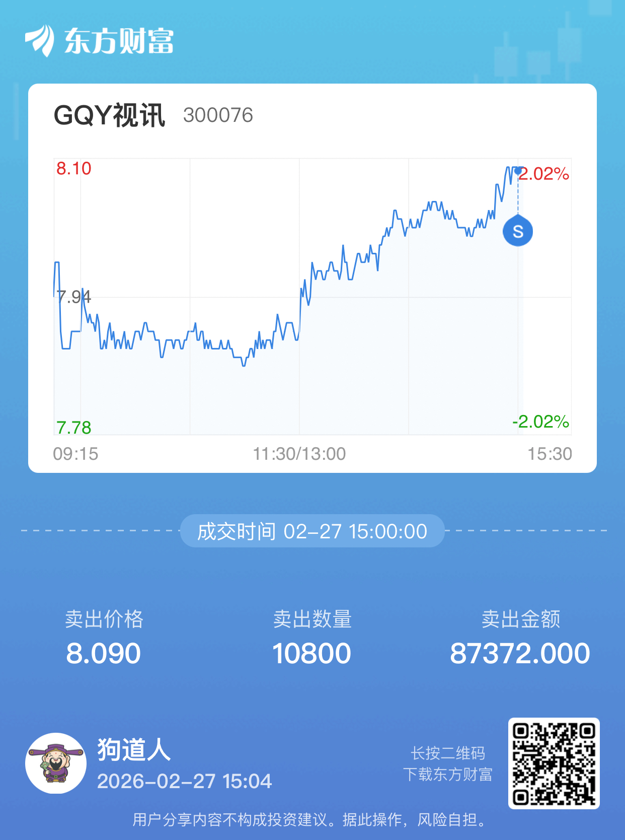 $GQY视讯(SZ300076)$ 清了心理不踏实