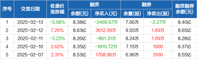 国民技术:融资净偿还2469.67万元,融资余额8.38亿元(02-13)