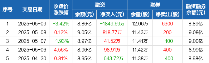 国民技术:融资净偿还1849.69万元,融资余额8.86亿元(05-09)
