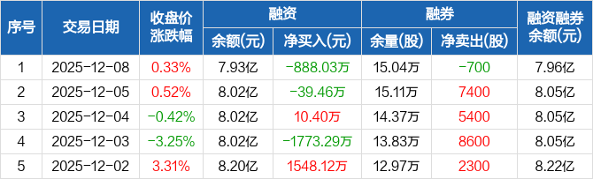 国民技术:融资净偿还888.03万元,融资余额7.93亿元(12-08)