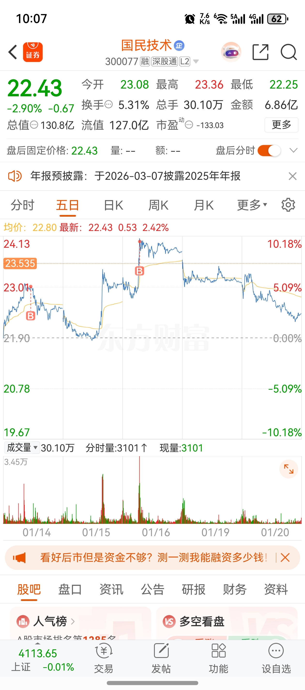 $国民技术(SZ300077)$ 不知道咋说,很看好但是没用,就是要割肉的样子了