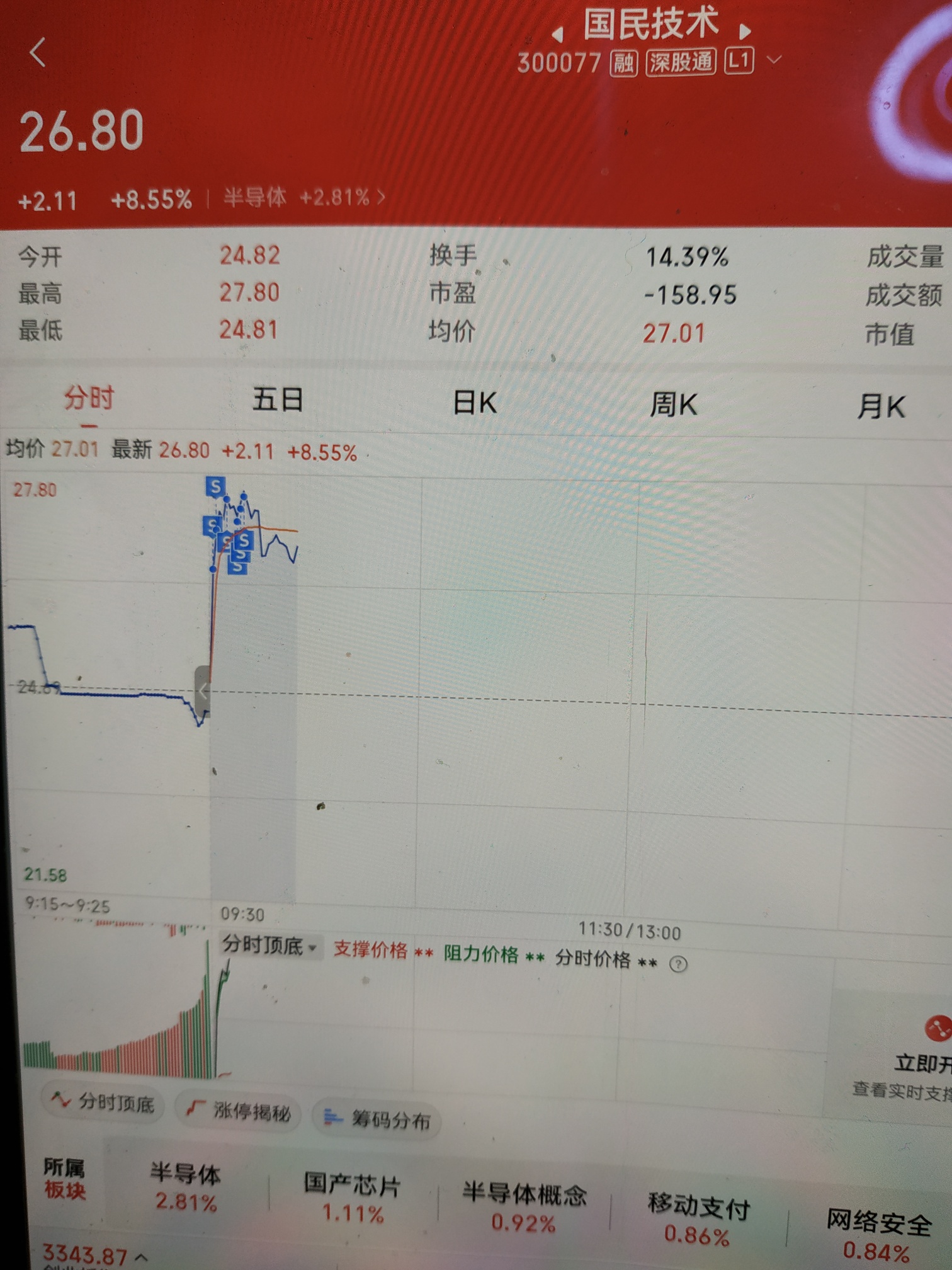 感谢国民技术。。如今这行情已经发癫了。。。亏损的越多越大涨。。黄金从30多一直飙