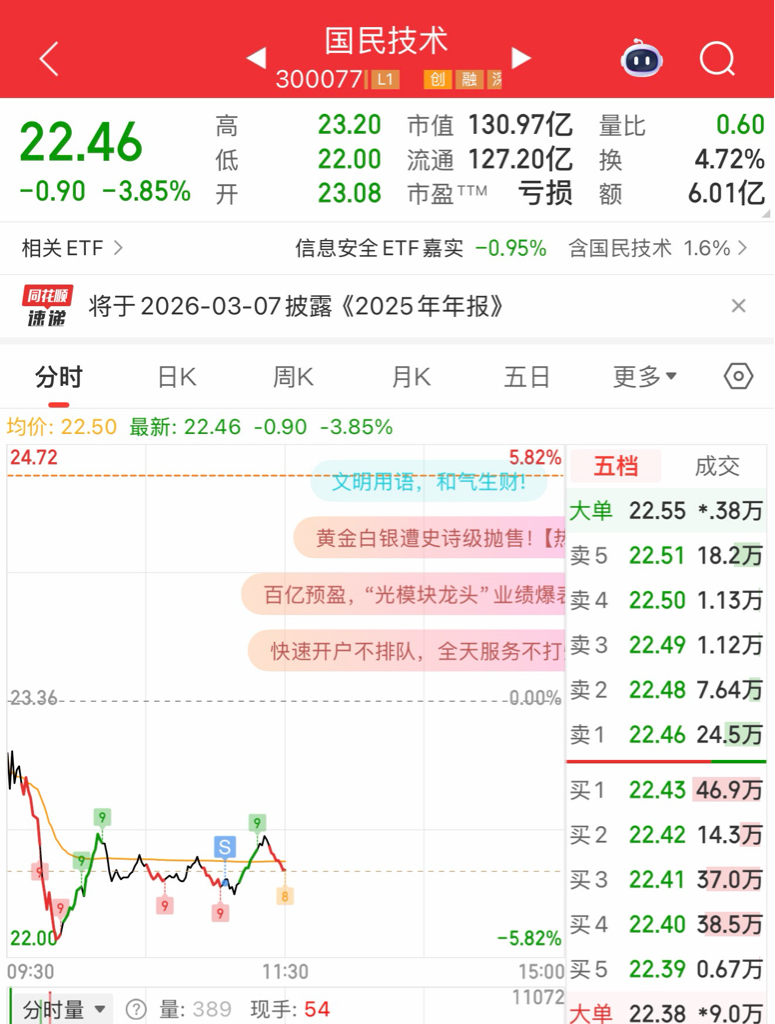 $国民技术(SZ300077)$ 割肉走人亏几个点跑路