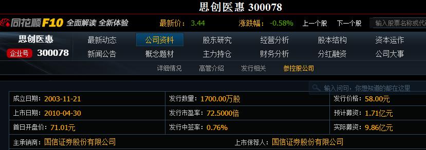 你敢相信吗?思创上市时间20几年了,发行价58元,首日就涨到71元。今年出现了历