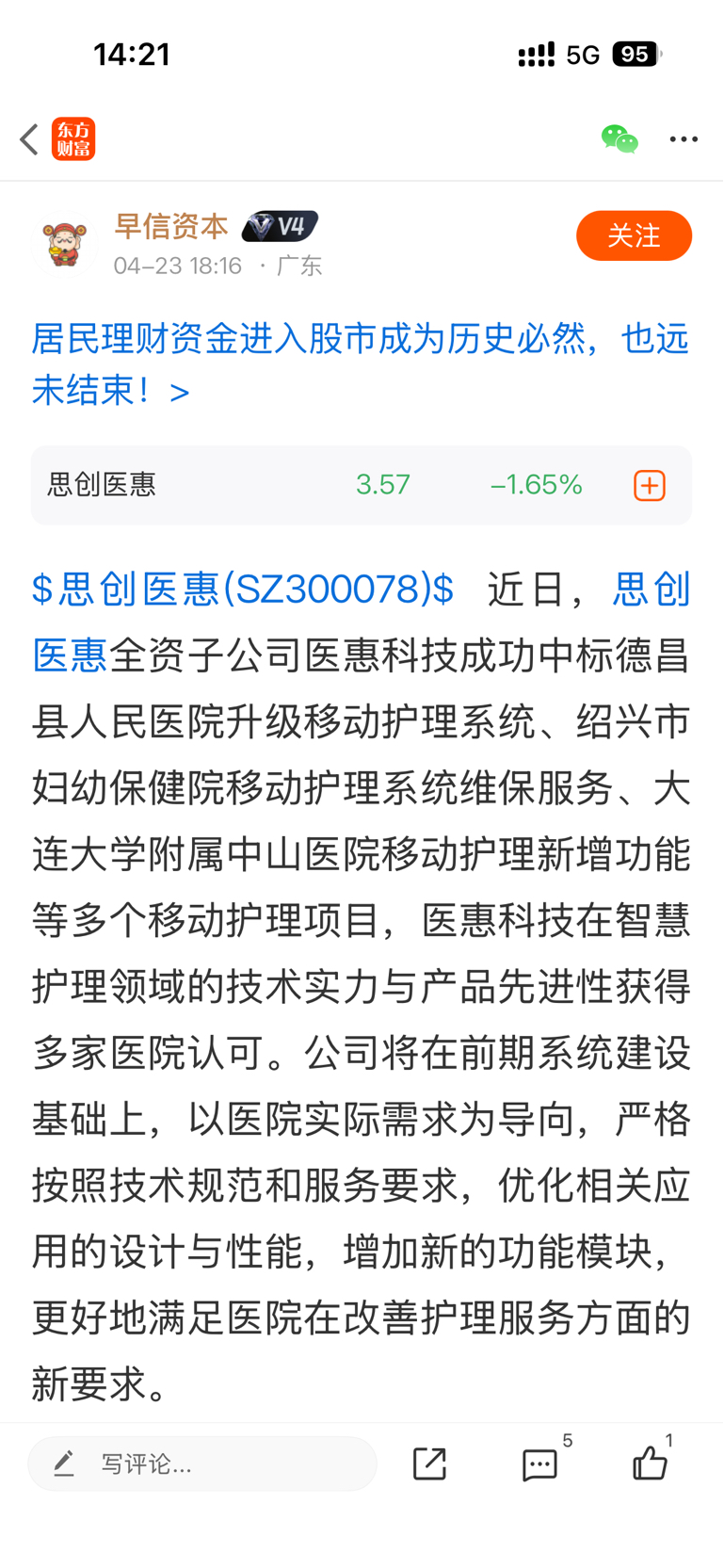$思创医惠(SZ300078)$ 早信资本这个账户真是专业犬托,持续唱多,让那么多散户上套。