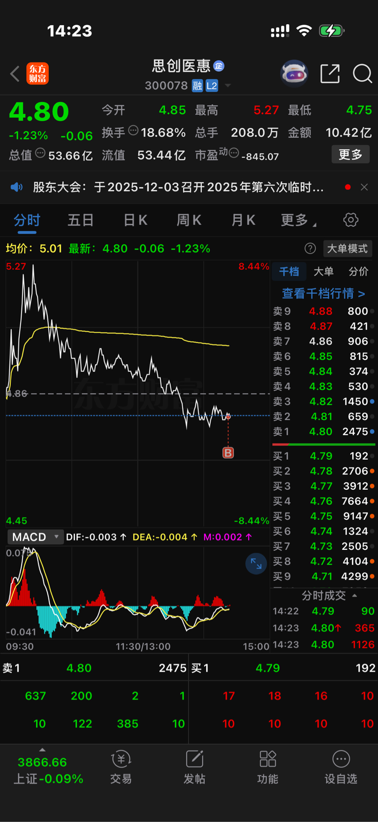 $思创医惠(SZ300078)$ 4.79买个5000股小赌一下