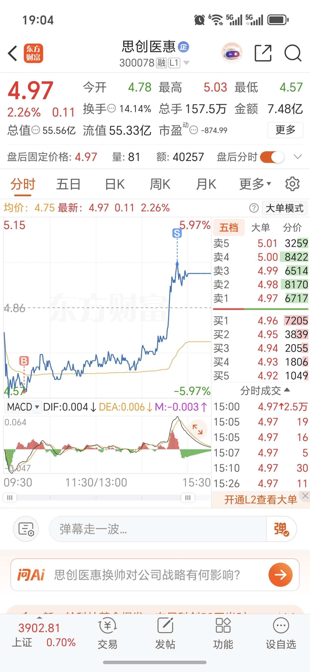 $思创医惠(SZ300078)$