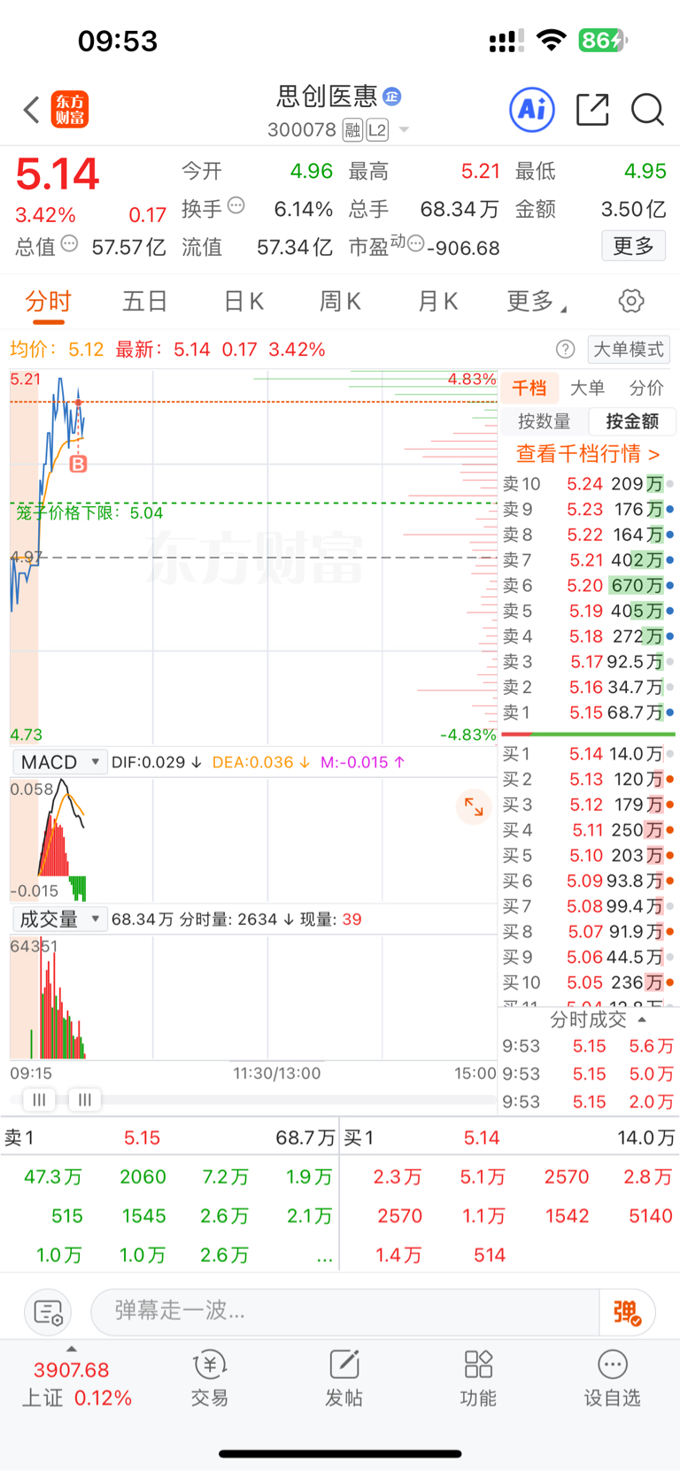 $思创医惠(SZ300078)$ 明少买入思创医惠