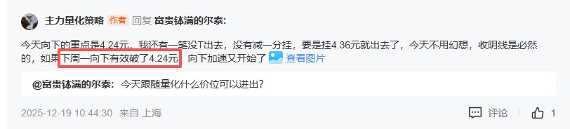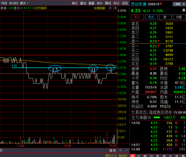 昨天周一下午破了4.24元反弹上不去昨天下午和今天上午就是:上午是因为昨天,下午