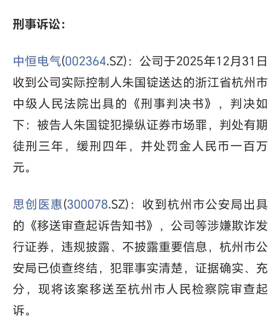 $思创医惠(SZ300078)$ 仔细看看,中恒就是起诉后判决,检察院提起诉讼,法院判决,也只是判当时的董事长入狱,罚金。罚金一百万。。。