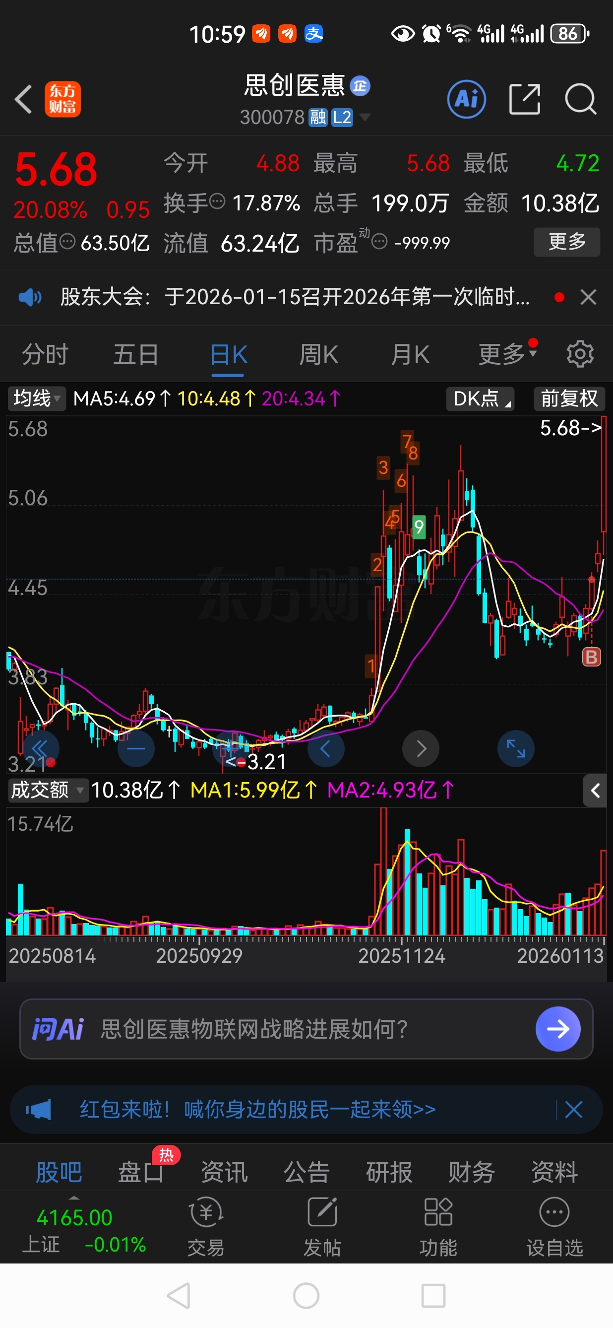$思创医惠(SZ300078)$ 昨天想加仓的,大腿拍肿了