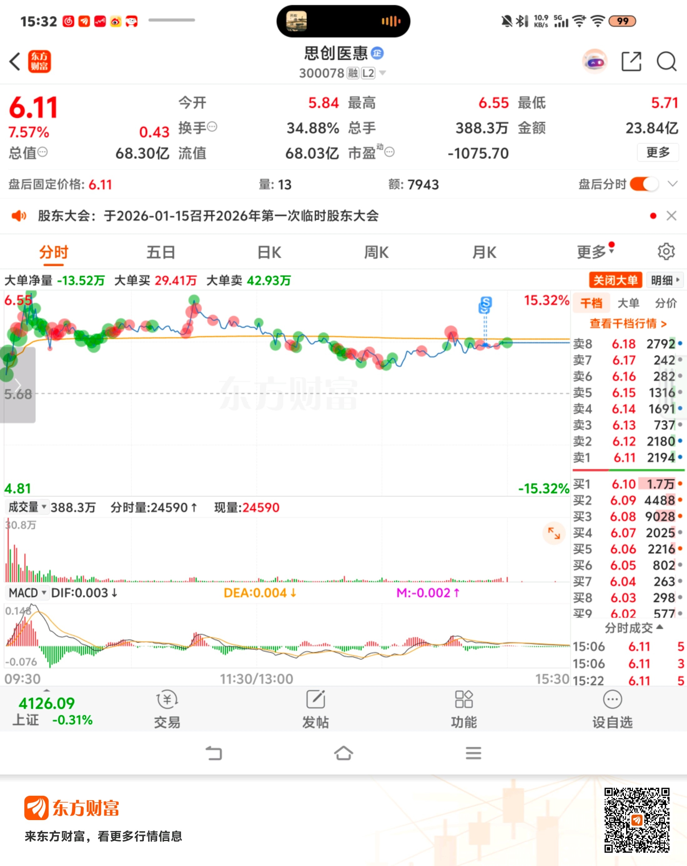 $思创医惠(SZ300078)$ 拜拜了您嘞