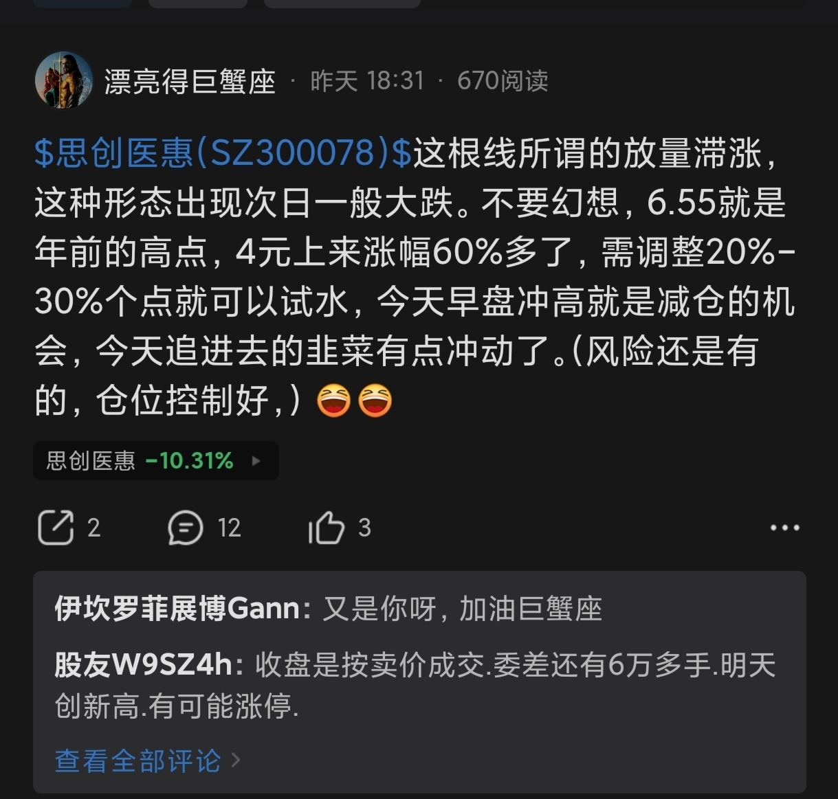 $思创医惠(SZ300078)$ 喷子们,服不服