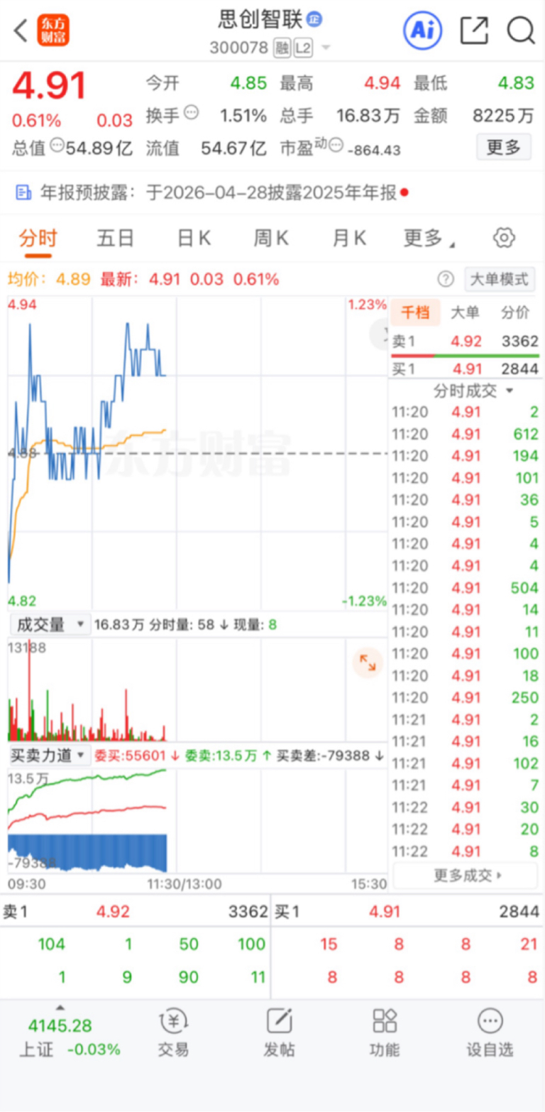 $思创智联(SZ300078)$ 板块下跌右边全是出货的单子,上涨也是在出,玩毛,庄太厉害了