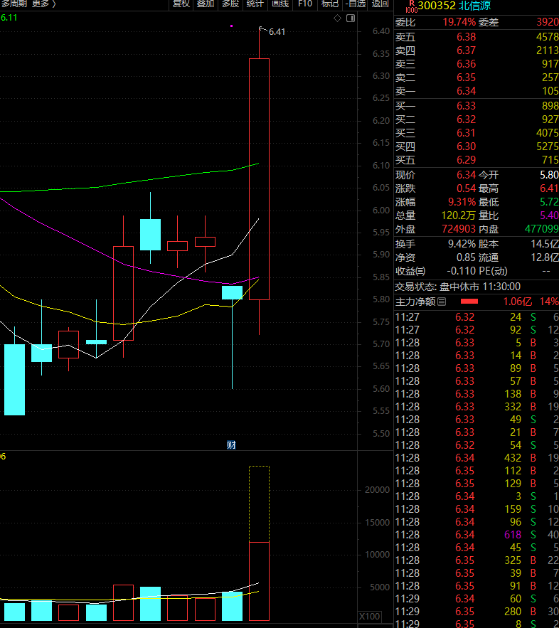 数码视讯:午盘千档盘口!北京同类股北信源启动。
