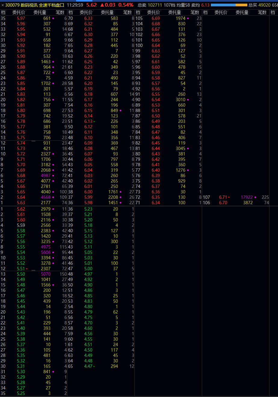 数码视讯:午盘千档盘口!北京同类股北信源启动。瞬间可涨停,近期中盘票,突然涨停现