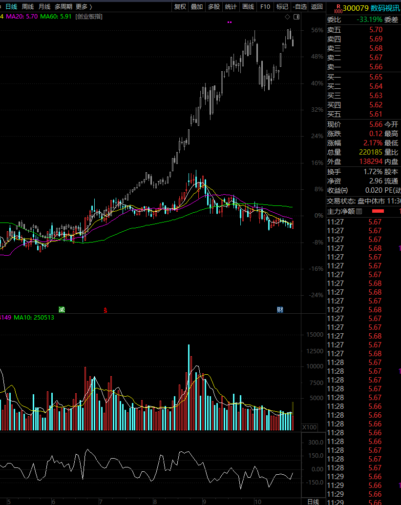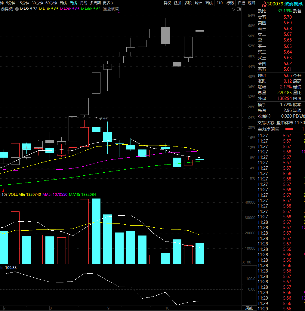数码视讯:日K、周K线,对比创业板指数,自己看!