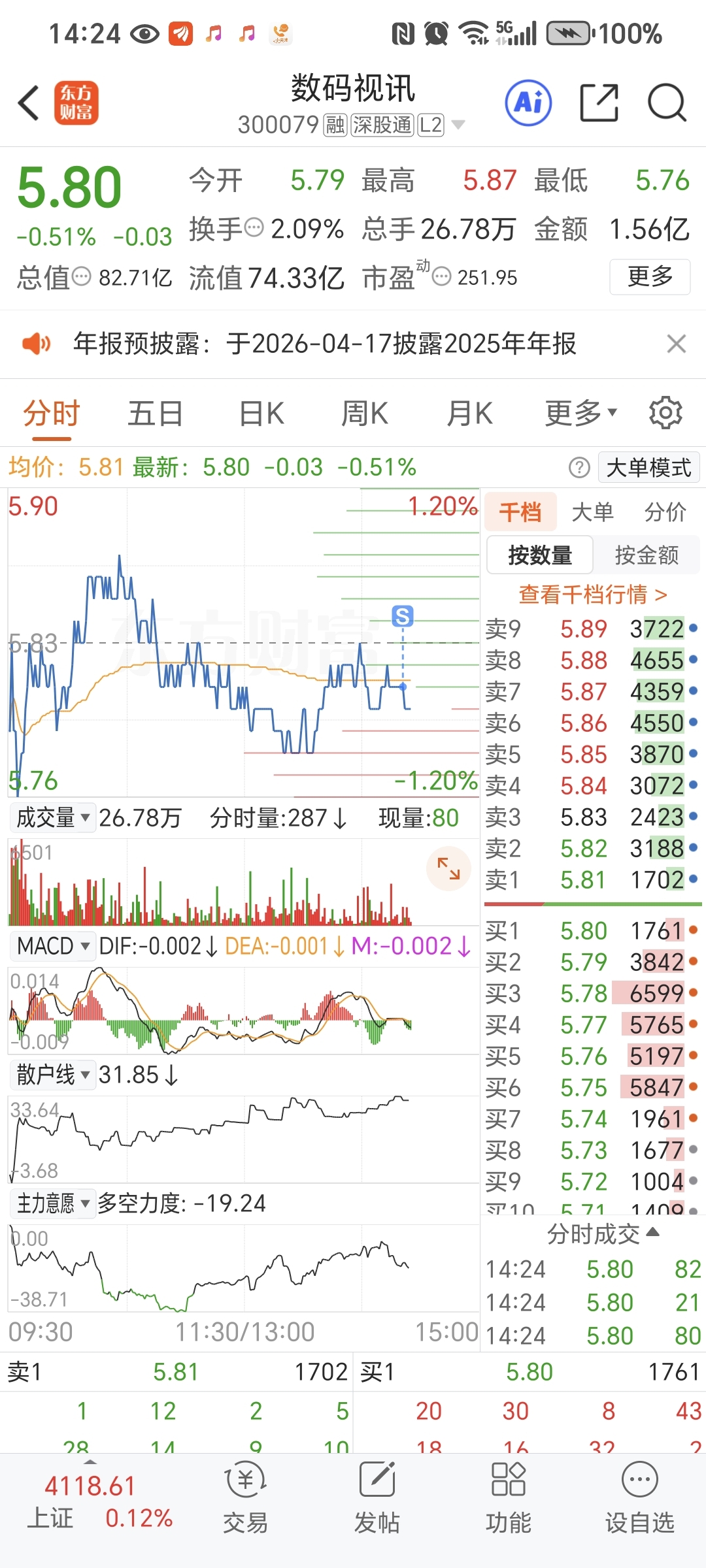 $数码视讯(SZ300079)$ 已割肉,祝你大涨