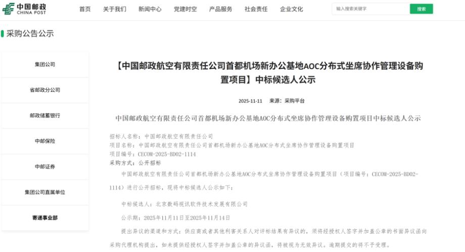 数码视讯(股票代码:300079)近期通过中标中国邮政首都机场AOC(航空运行中