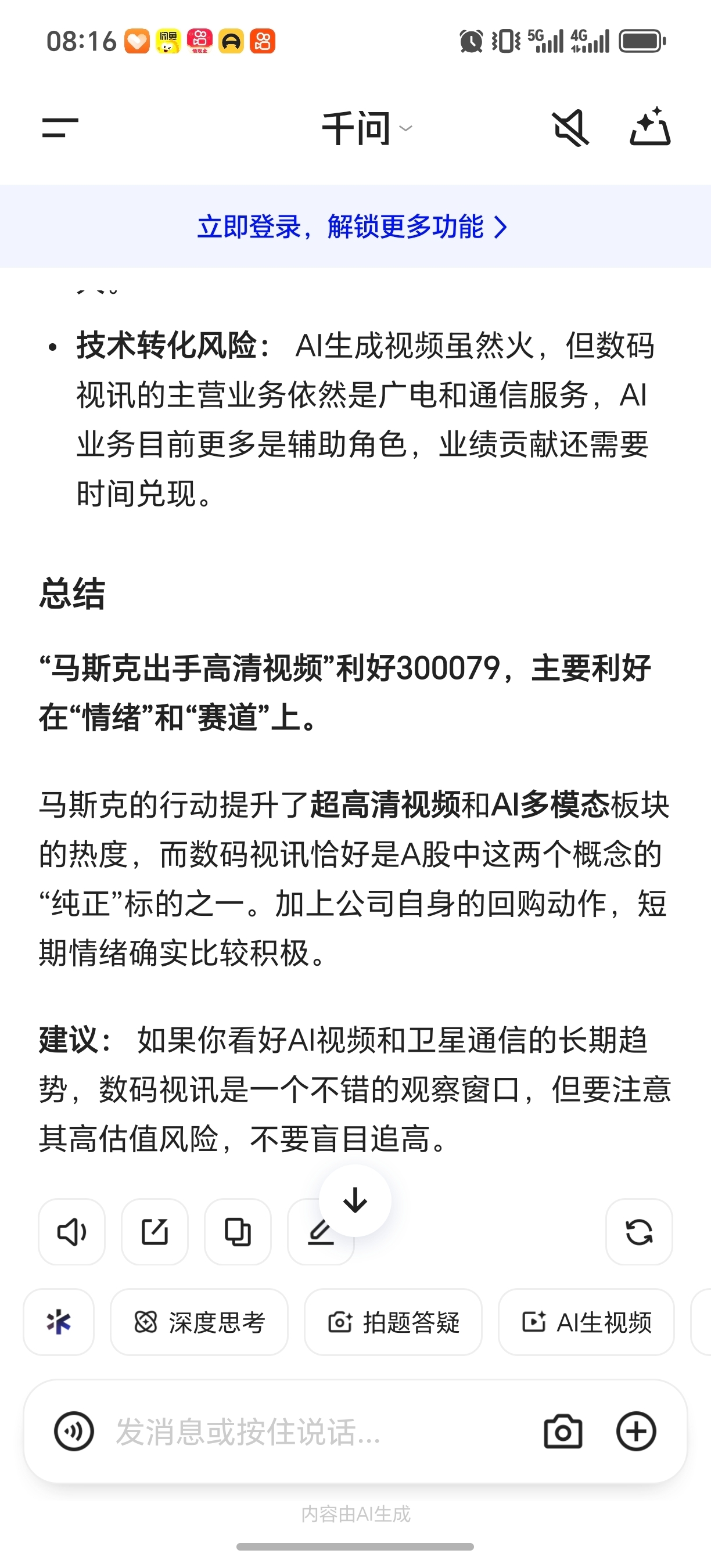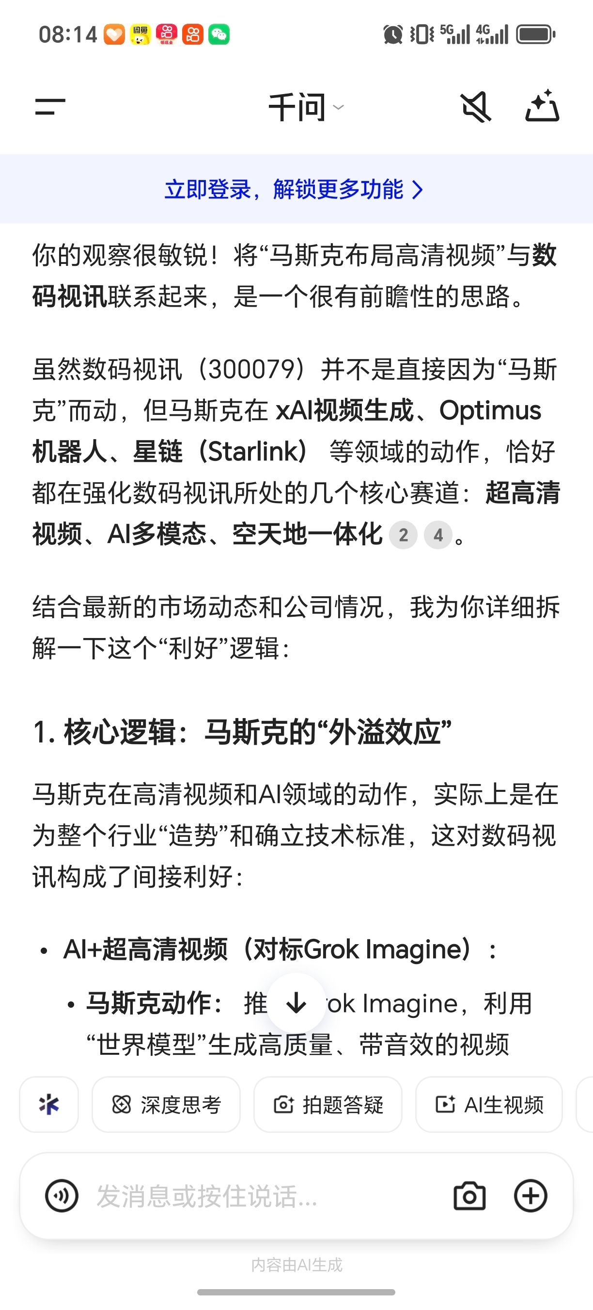 $数码视讯(SZ300079)$ 马斯克出手超高清利好数码视讯