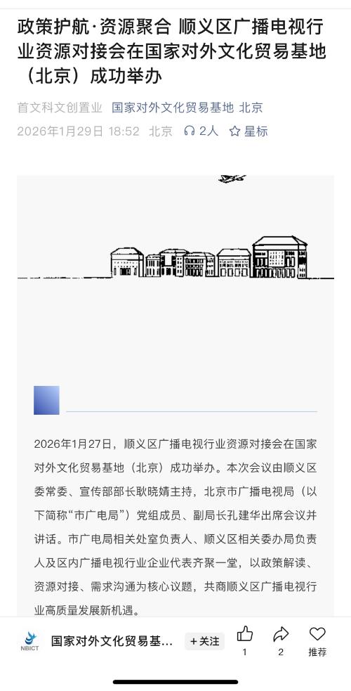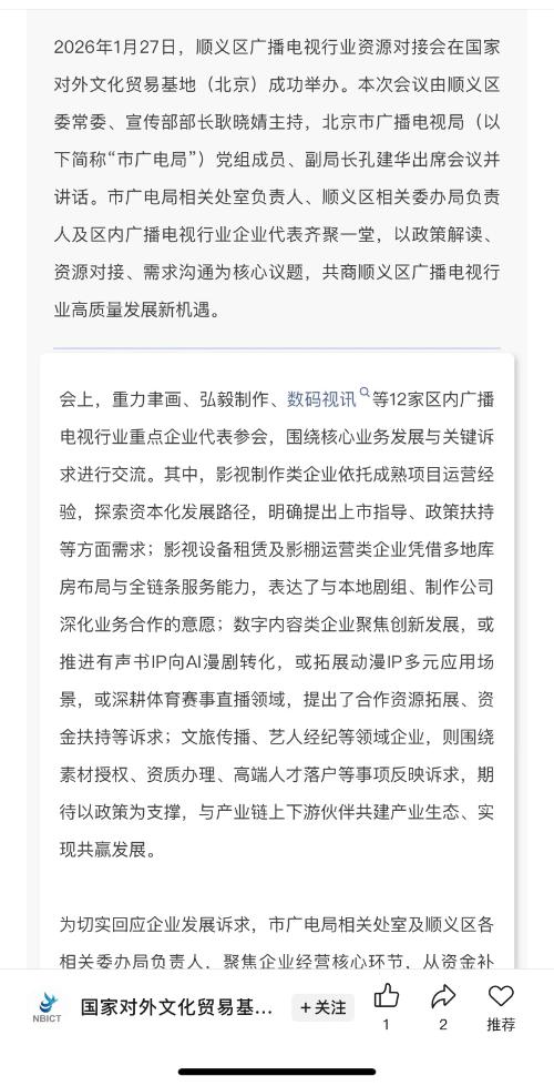 加快推进AI漫剧上市2026年1月27日,顺义区广播电视行业资源对接会在国家对外
