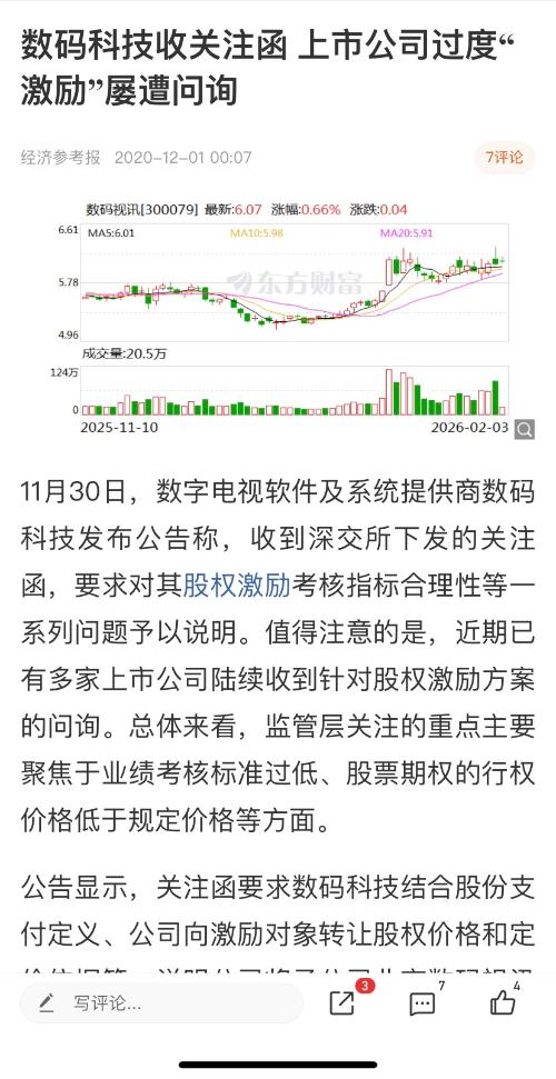 数码科技收关注函上市公司过度“激励”屡遭问询