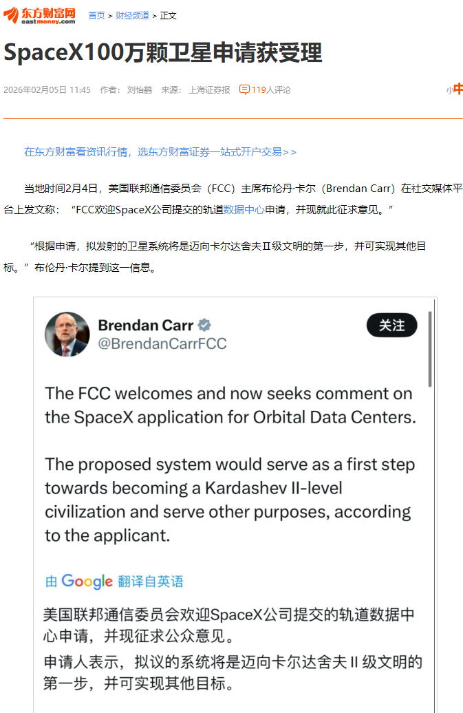 数码视讯:SpaceX100万颗卫星申请获受理!牛掰吧!你刚添加商业航天,下午可
