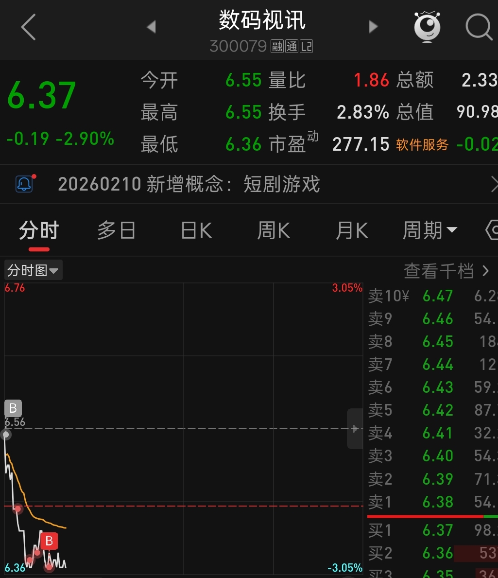 $数码视讯(SZ300079)$ 麻蛋,一买就跌,接盘了。