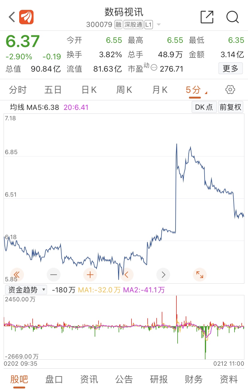 今天收盘低于6.5元,明天就要回到5.85附近去了