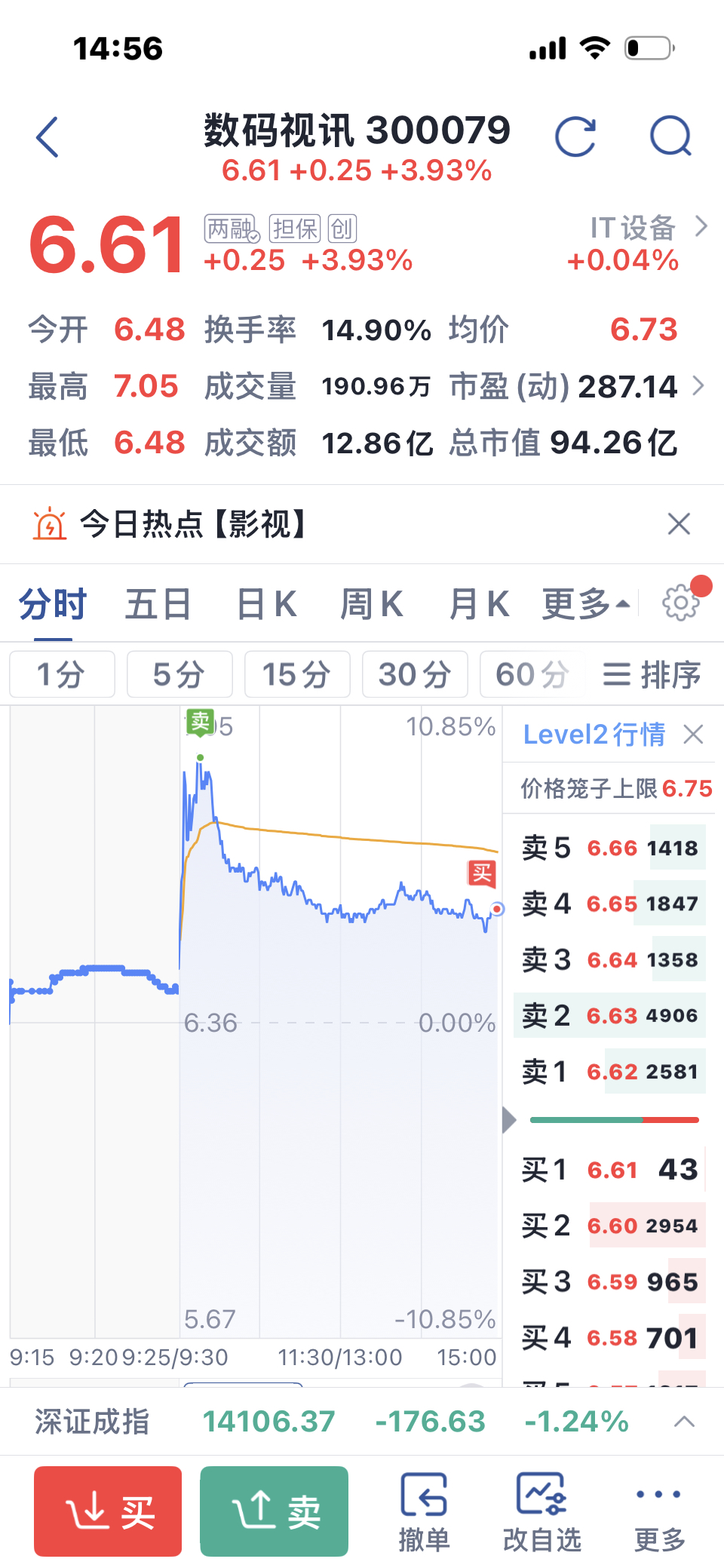$数码视讯(SZ300079)$ 一天没有白做,希望能开门红冲718