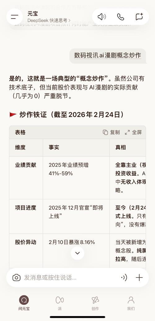 数码视讯 核心风险:击鼓传花1. 估值泡沫:市盈率(TTM)超300倍,全靠“AI漫剧”这个故事撑着。2. 退潮即崩:一旦市场发现作品迟迟不上线或播放量扑街,资金会瞬间撤离。3. 业绩证伪:2025年年报(即将发布)若显示AI漫剧收入为0,股价将面临戴维斯双杀。 建议:如果你不是短线高手,只看戏别下场。这种炒作只适合“快进快出”,普通人进去大概率是接盘侠。$数码视讯(SZ300079)$ $上证指数(SH000001)$