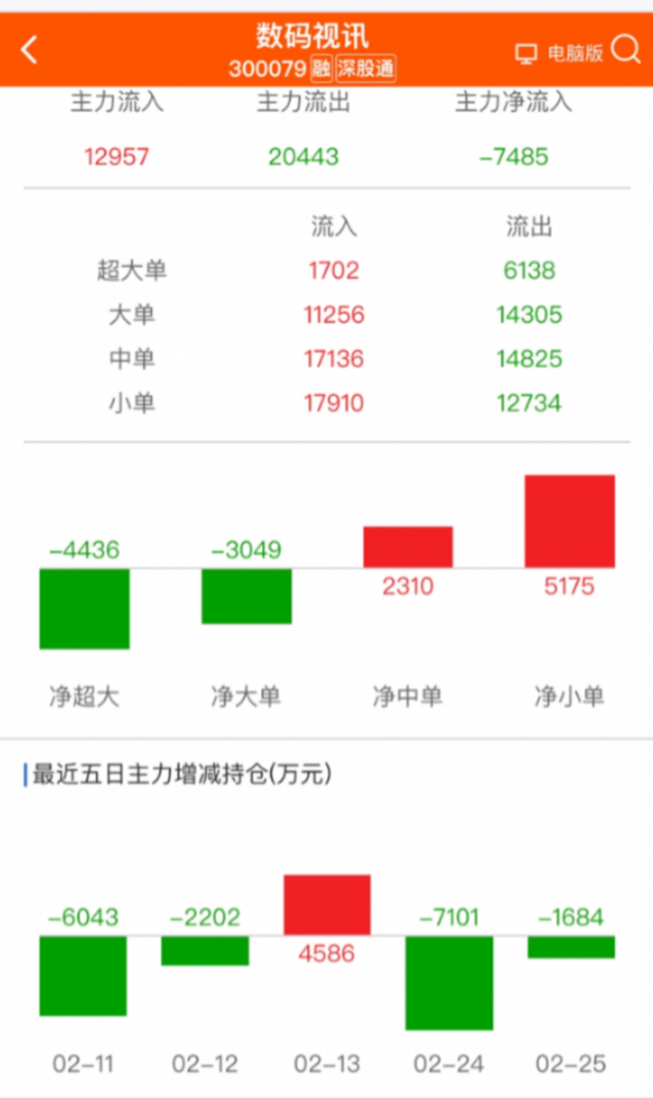 数码视讯周二资金出逃7101万,周三资金出逃1684万,周四资金出逃7485万,