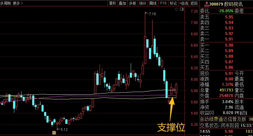 $数码视讯(SZ300079)$ 近期高位回落幅度过大,整体是破位的走法,虽然短线这几天能够在脚底大均线得到了支撑,但整体形态不好看,想要起来估计需要消耗不少时间,同时需要关注继续回落的破位风险。