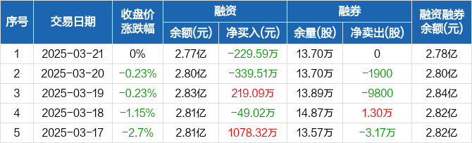 易成新能:融资净偿还229.59万元,融资余额2.77亿元(03-21)