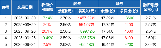 易成新能:融资净买入1457.22万元,融资余额2.7亿元(09-30)