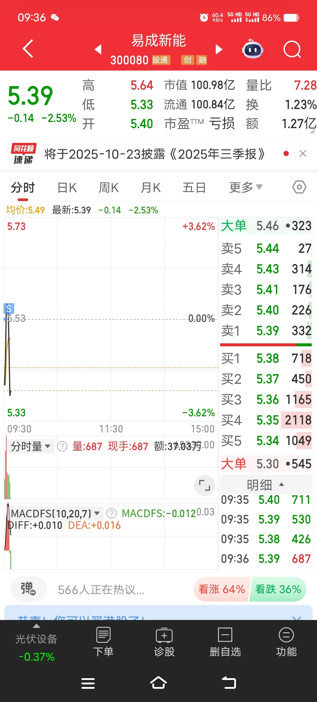 $易成新能(SZ300080)$ 开盘 走了,剩下的留给兄弟们发财