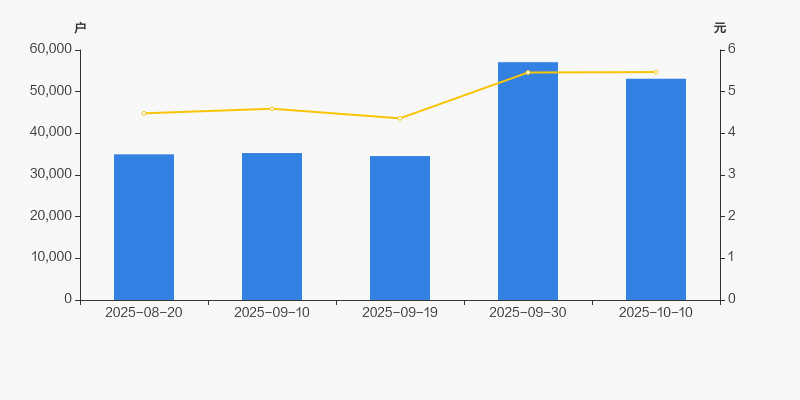 2025年8月20日至今,公司股东户数显著大幅增长,区间涨幅达51.92%。2025年8月20日至2025年10月10日区间股价上涨22.10%。