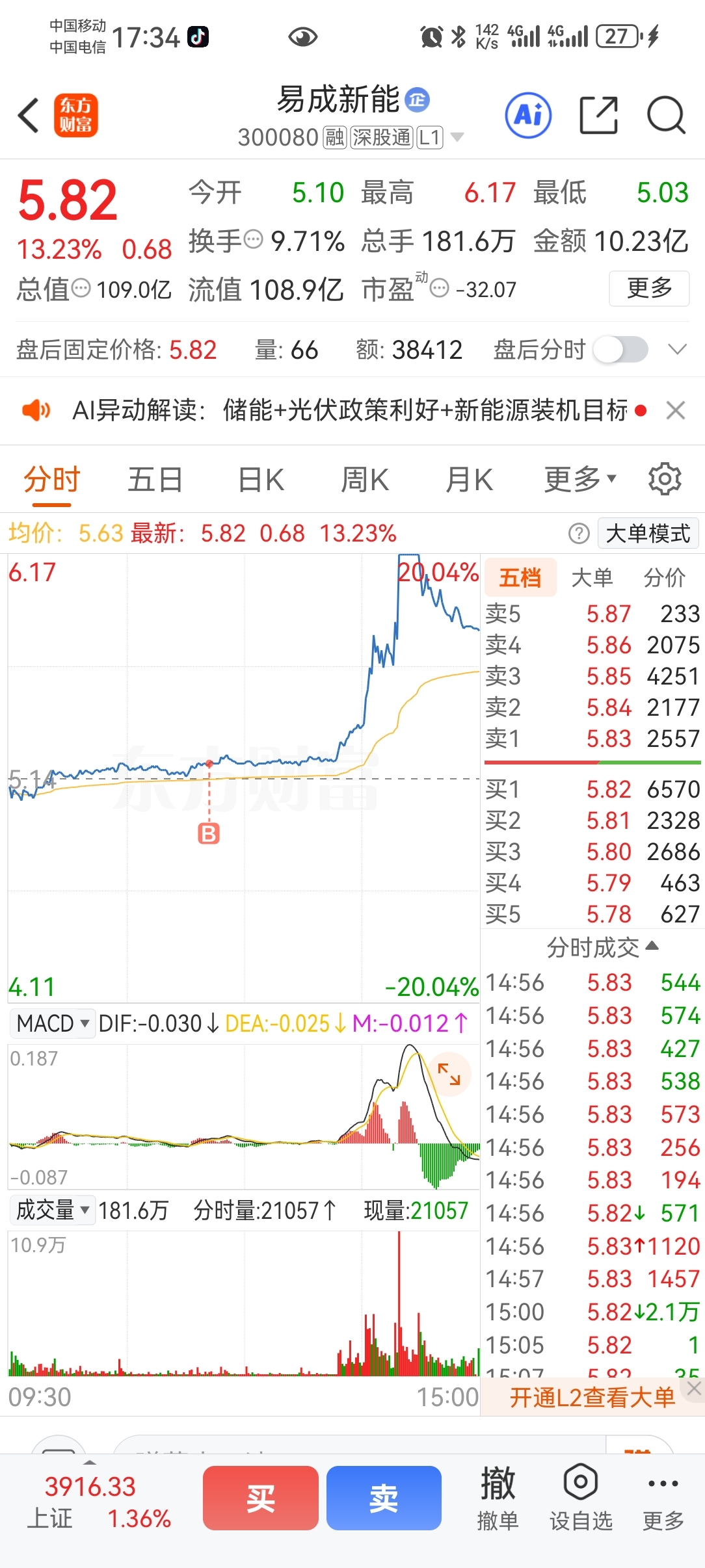 $易成新能(SZ300080)$
