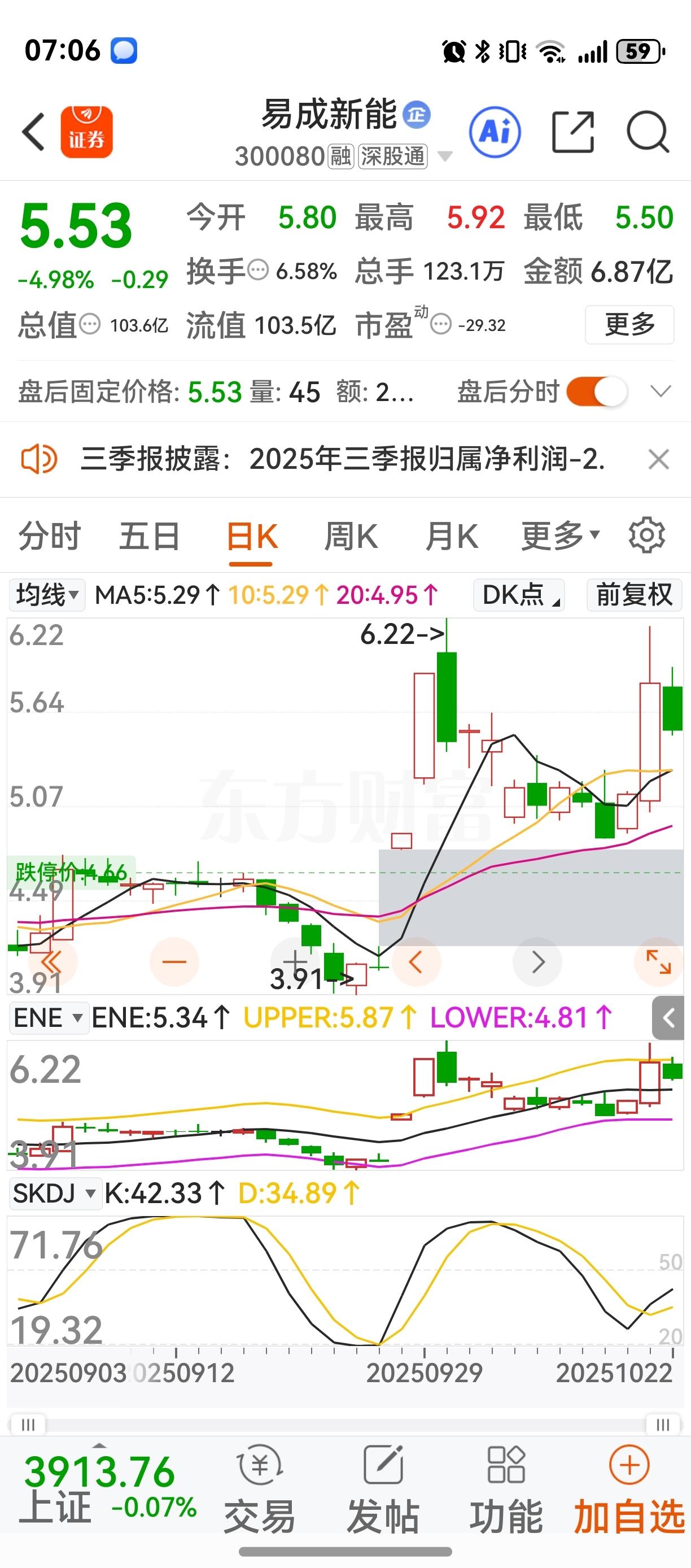 $易成新能(SZ300080)$ 哈哈哈兄弟们易成这份业绩答卷同比还是不错的哦,这个应该就是昨日冲板的原因了!明天该咋走还是咋走,希望没有底仓的明天如有冲高就不要追了,下午555左右低吸的明天若冲570上方建议以T出为主!明日预测(区间530一582)