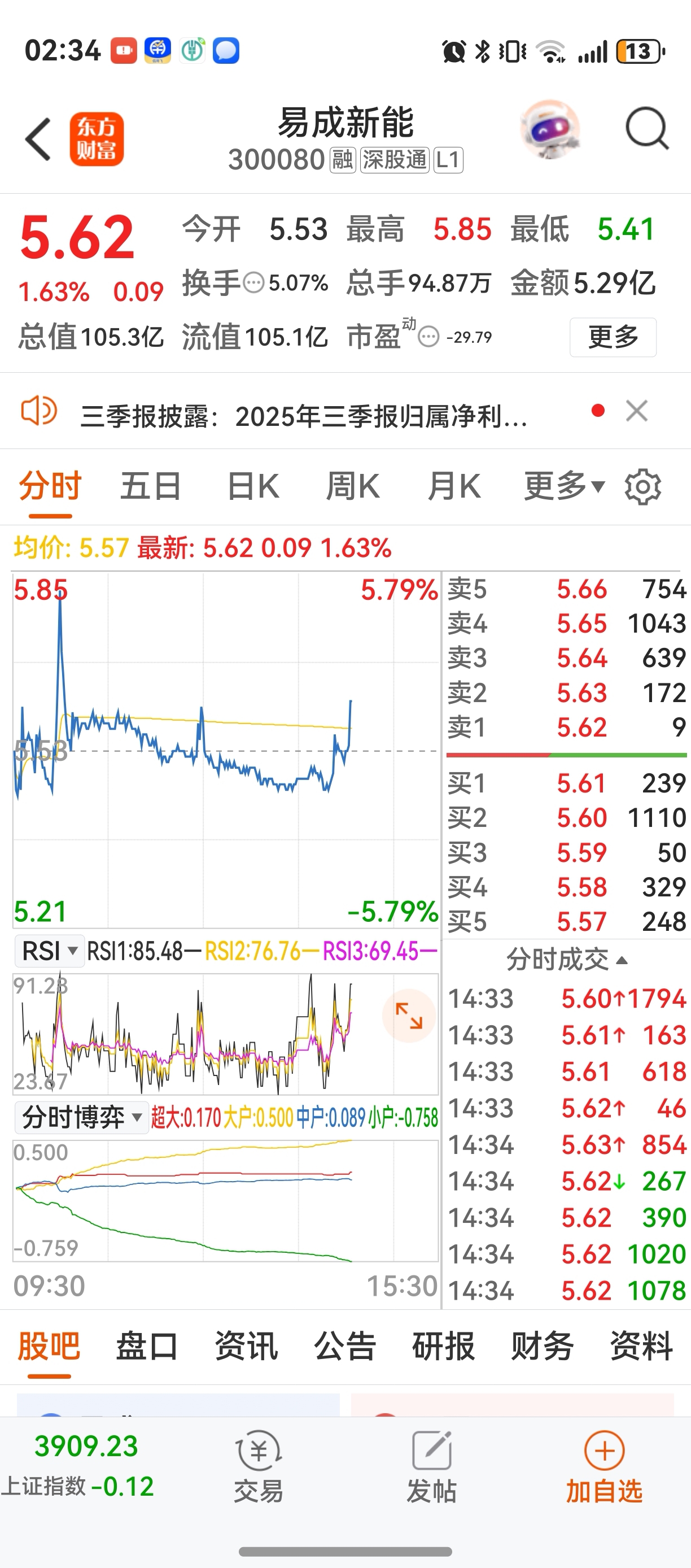 $易成新能(SZ300080)$ 三五个的T王!大小资金都要跟练中,底仓别T丢了!