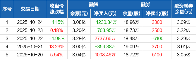 易成新能:融资净偿还1230.84万元,融资余额3.08亿元(10-24)
