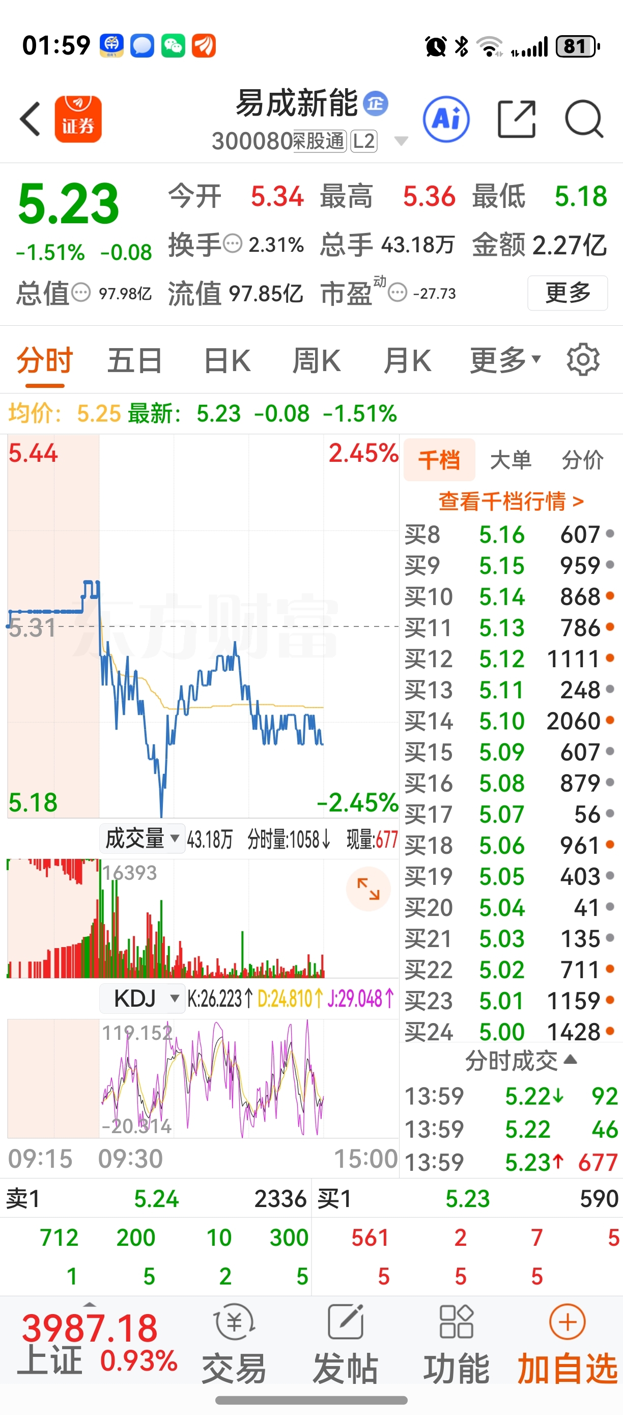 $易成新能(SZ300080)$ 别着急,重心下移,明天考验5.08支撑,本次回调应见4.96!