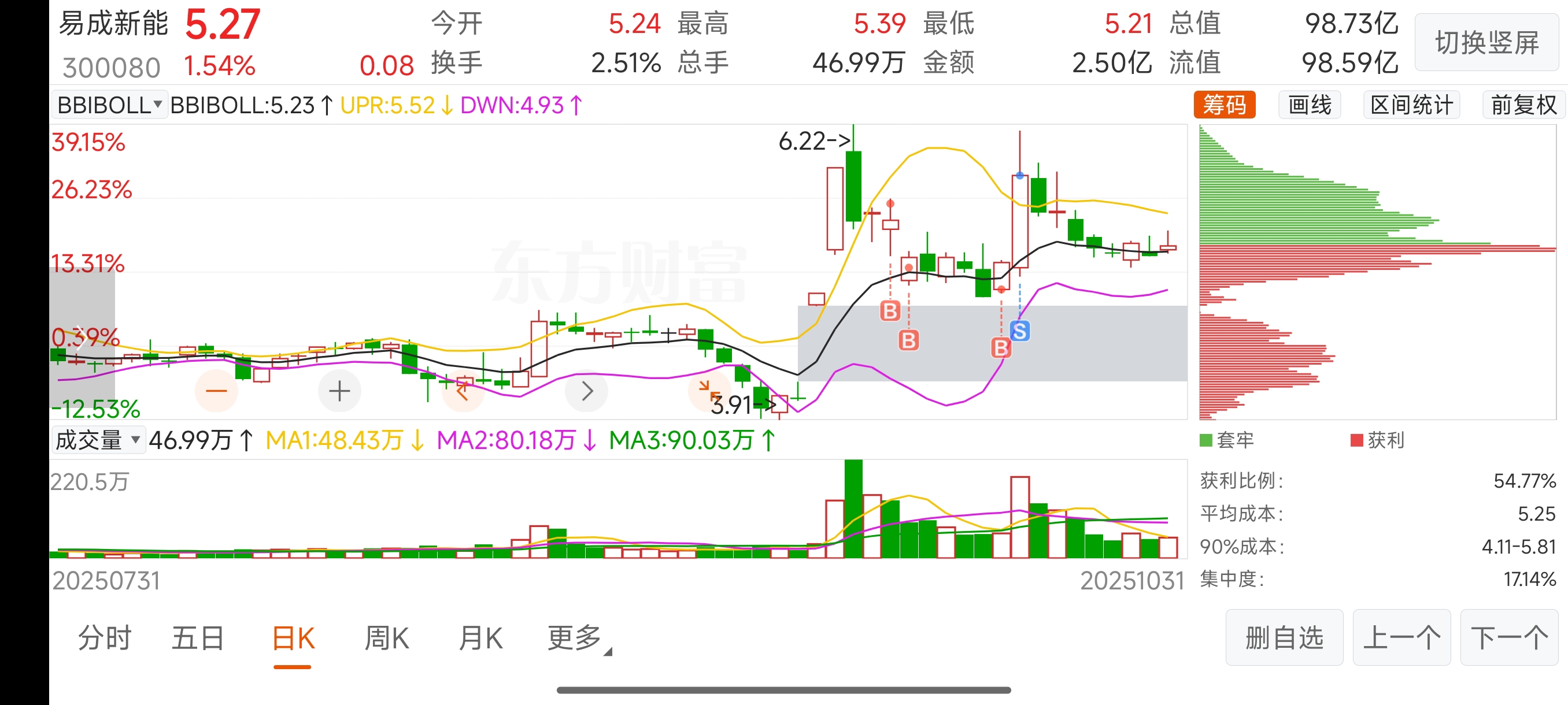 $易成新能(SZ300080)$ 真真该死啊,还在后悔少赚了5个点,结果却害苦了接我盘的兄弟,兄弟别害怕,星期一我再接回来