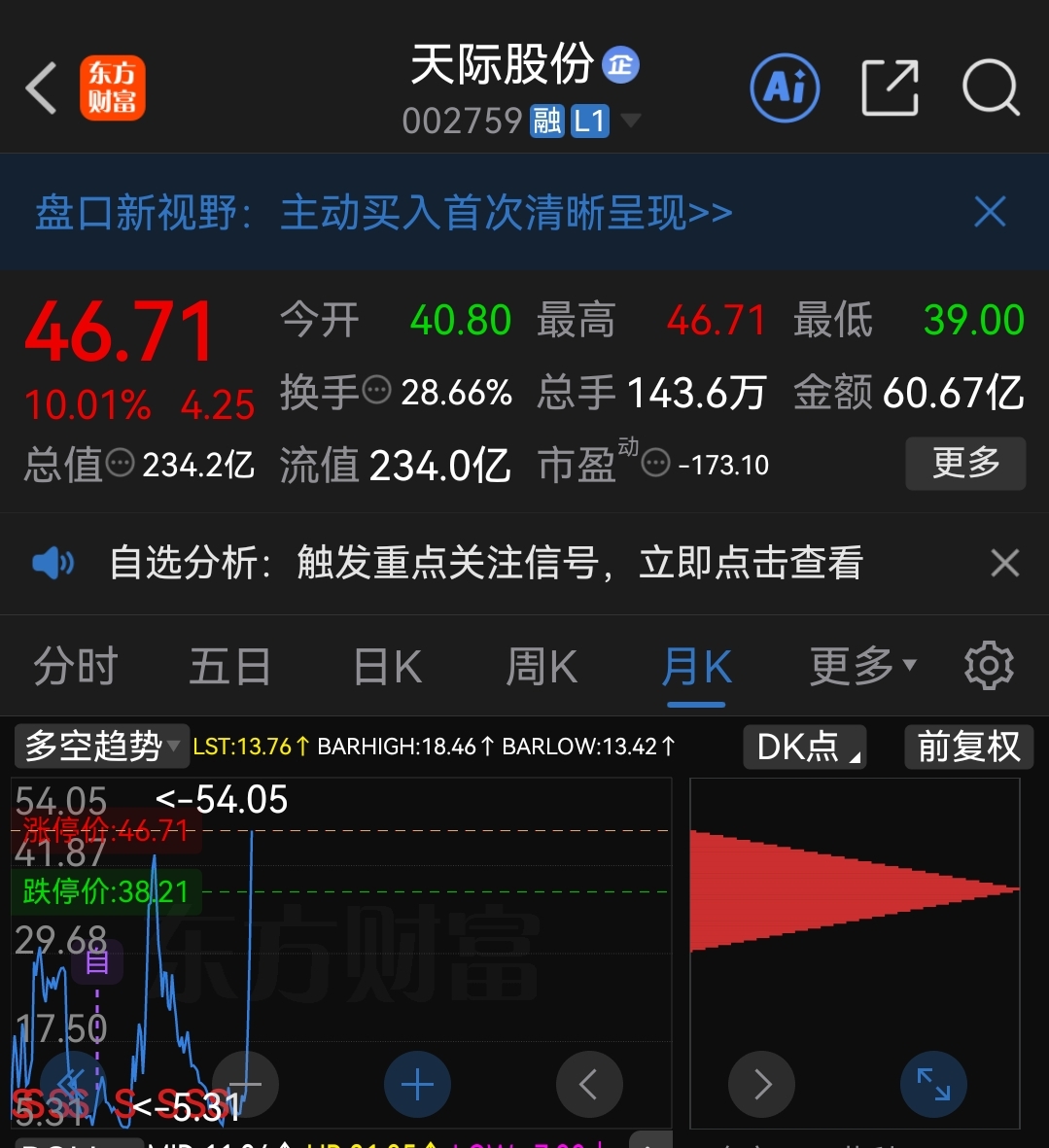 在天际20万股今天在天际股份获8倍涨幅的涨停板价先出10万准备明天大抄回~易成新