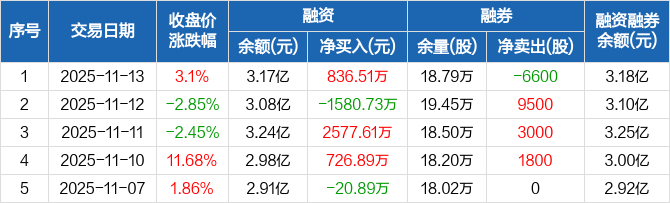 易成新能:融资净买入836.51万元,融资余额3.17亿元(11-13)