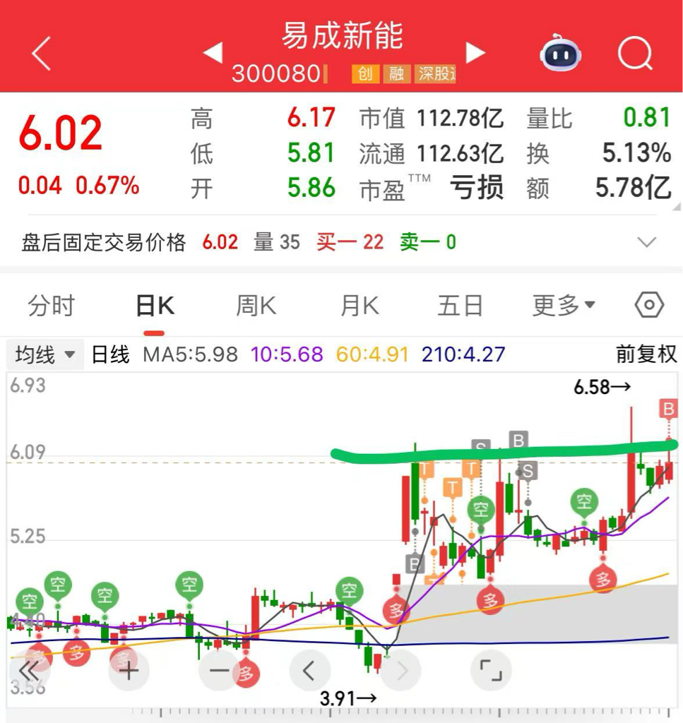 $易成新能(SZ300080)$ 阻力位已经上攻五次了,看下周能否有力突破,站稳6块。牛市之中,目前易成新能还是低估值。